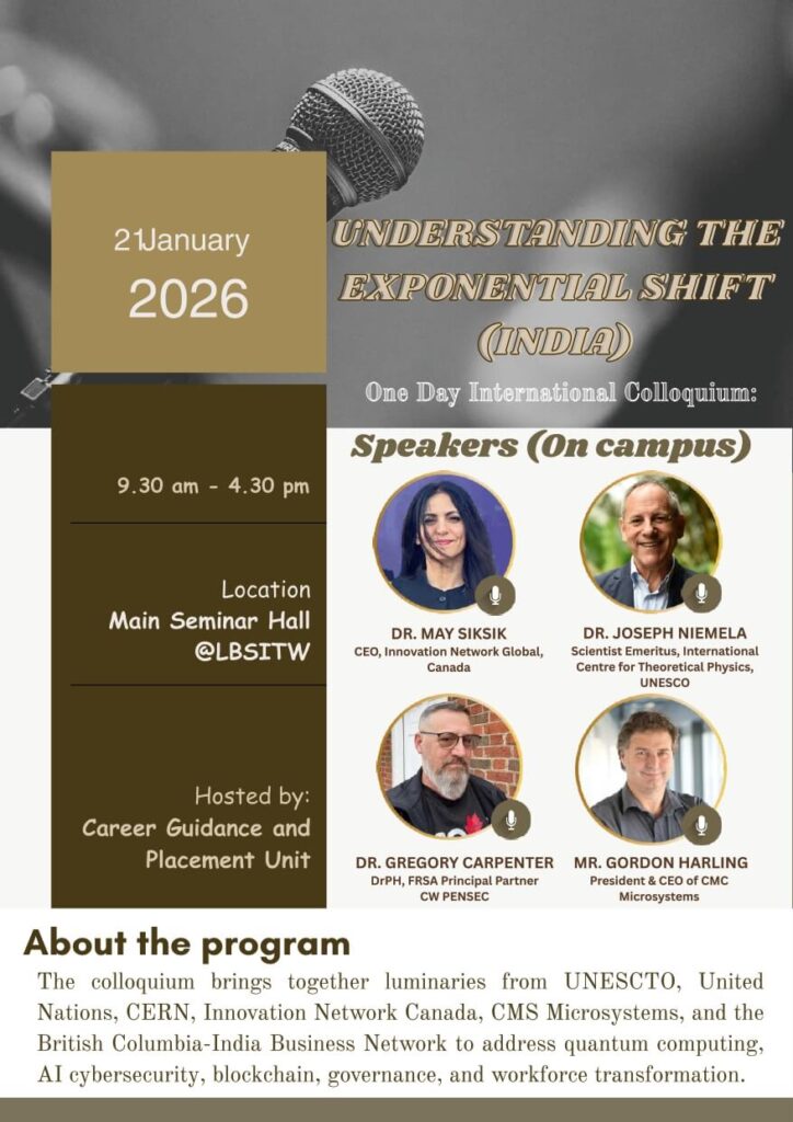 This colloquium brings together luminaries from UNESCTO, United Nations, CERN, Innovation Network Canada, CMS Microsystems, and the British Columbia-India Business Network to address quantum computing, AI cybersecurity, blockchain, governance, and workforce transformation.