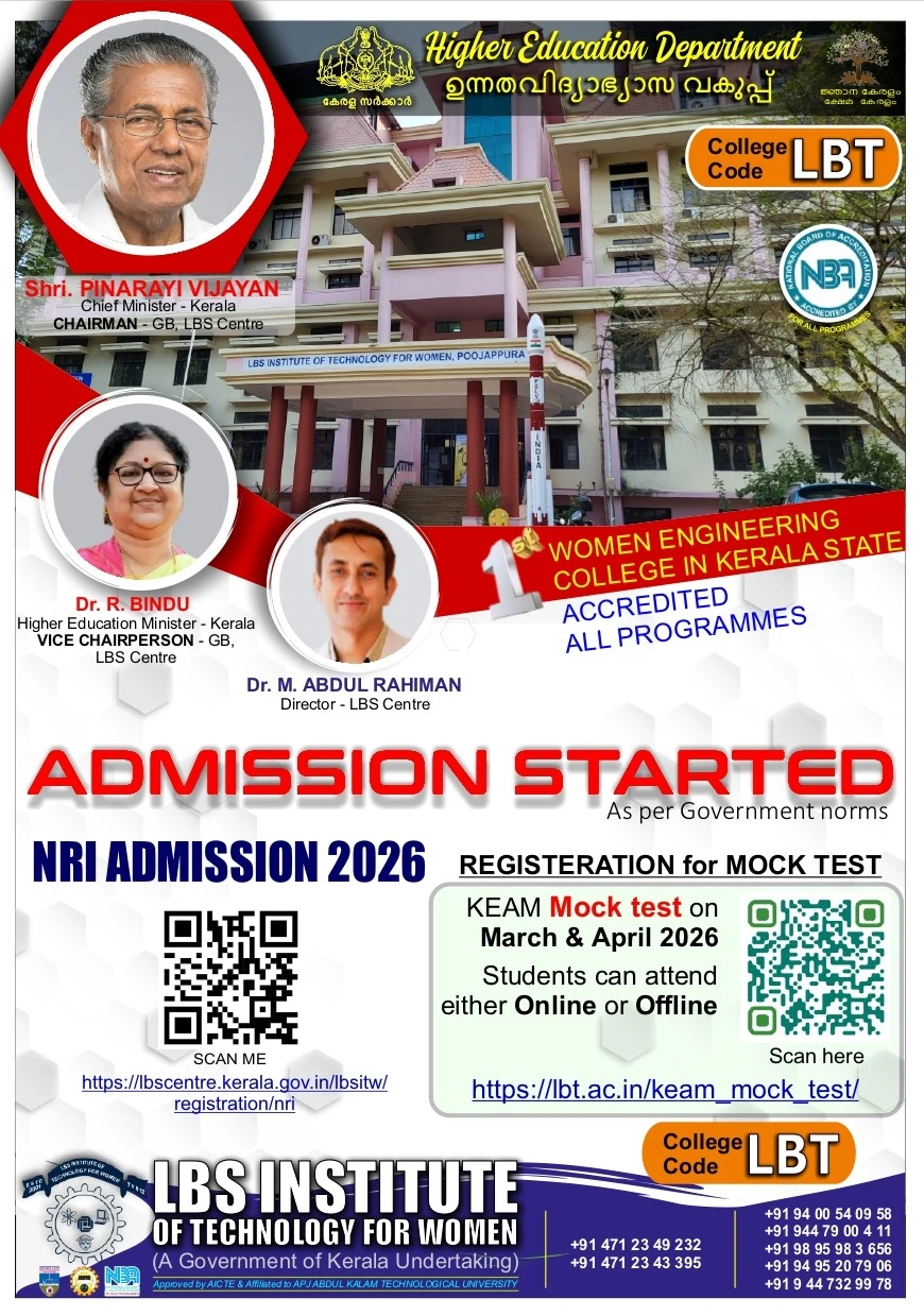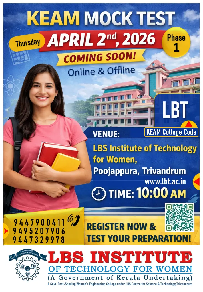 കമ്പ്യൂട്ടർ അധിഷ്ഠിത രീതിയിൽ  നടക്കുന്ന കേരള എഞ്ചിനീയറിംഗ് പ്രവേശന പരീക്ഷ (കീം 2026) വിദ്യാർത്ഥികൾക്ക് പരിചയപ്പെടുത്തുക എന്ന ലക്ഷ്യത്തോടെ പൂജപ്പുര എൽ.ബി.എസ് വനിതാ എഞ്ചിനീയറിംഗ് കോളേജ് (LBSITW) തികച്ചും സൗജന്യമായി മോഡൽ പരീക്ഷ നടത്തുന്നു. ഓൺലൈൻ ആയി നടത്തപെടുന്ന കീം പരീക്ഷയുടെ അതേ രീതിയിലും സമയ ദൈർഘ്യത്തിലുമാണ് മോഡൽ പരീക്ഷയും നടത്തുന്നത്. ആയതിനാൽ നിശ്ചിത സമയത്തിനുള്ളിൽ പരീക്ഷ എങ്ങനെ വിജയകരമായി പൂർത്തീകരിക്കാമെന്നത് സംബന്ധിച്ചുള്ള ധാരണ ഉണ്ടാക്കാൻ ഇത് വിദ്യാർത്ഥികളെ സഹായിക്കും. വിദ്യാർത്ഥികൾക്ക് അവരുടെ കമ്പ്യൂട്ടർ സിസ്റ്റം ഉപയോഗിച്ച് വീട്ടിലിരുന്ന് തന്നെ ഈ പരിശീലന പരീക്ഷയിൽ പങ്കെടുക്കാവുന്നതാണ്.